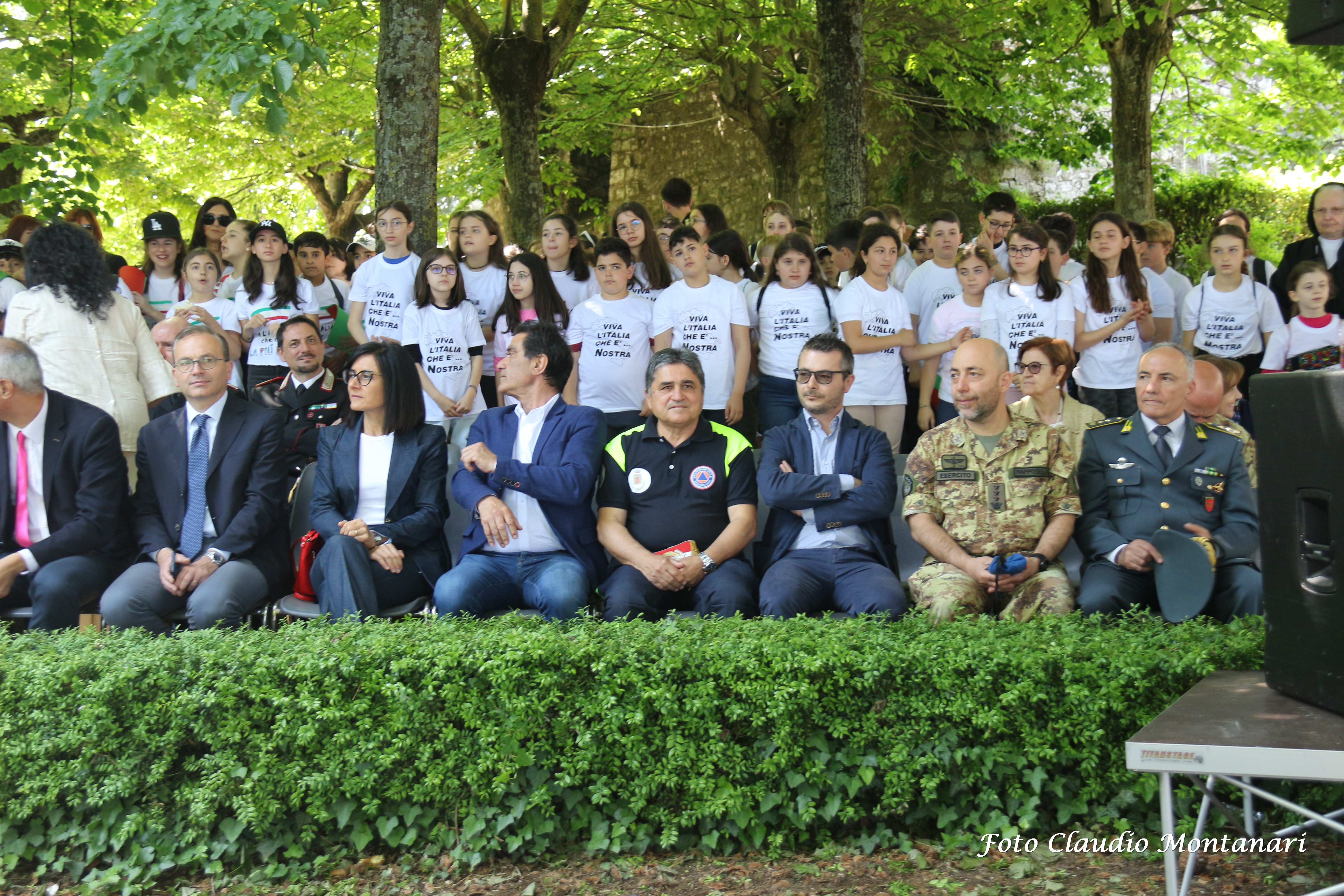 Presenti gli studenti delle scuole di tutto il distretto, tutti in t-shirt bianca con striature del tricolore e slogan creativo riferito allo scopo dell'incontro, era presente la sindaca Giulia De Santis, il Maggiore Antonino Zangla comandante della Compagnia Carabinieri di Montefiascone, il Luogotenente Fabrizio Botticelli, il Tenente Colonnello Rosario Masdea per il Comando provinciale della Guardia di Finanza i dirigenti degli Istituti scolastici del distretto VT1 i sindaci di vari paesi della Tuscia e le Associazioni Nazionale Carabinieri di vari distretti tra cui la nostra Sezione di Montefiascone con il Presidente Sandro Cirica.