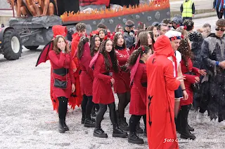 La carovana, sotto la vigilanza delle forze dell'Ordine e dei volontari dell'AS.VO.M. è partita dal piazzale di fronte alla caserma dei Carabinieri, passando per Via Aldo Moro e percorrendo la Via Dante Alighieri fino all'arrivo a Piazzale Roma dove era stato allestito un gazebo per la distribuzione di castagnole e dove le persone in maschera si sono esibite in balli e scherzi a ritmo di musica.